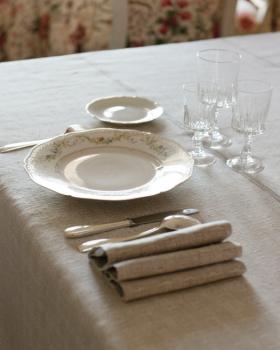 Château de Castelnau-Bretenoux, table dressée dans l'oratoire avec le linge de maison et la vaisselle de Jean Mouliérat