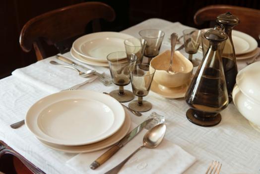 Fort de Brégançon, salle à manger, détail de la table dessée
