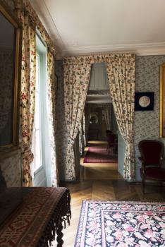 Château de Bouges, enfilade de la chambre bleue et de la salle de bains