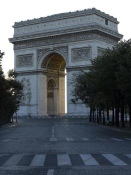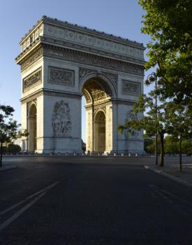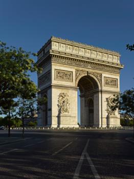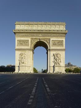 L'Arc de triomphe de l'Étoile, côté est, depuis l'avenue des Champs-Élysées