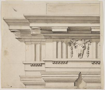 Entablement des pavillons en rez-de-chaussée de la façade sur cour du château de Maisons
