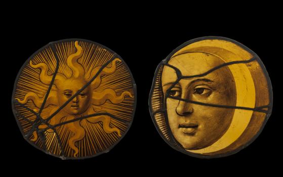 Septième sceau : les sept trompettes, détail des visages de deux anges musiciens