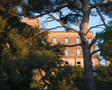 Parc de Saint-Cloud, la France couronnant l'Art et l'Industrie vue à travers des feuillages
