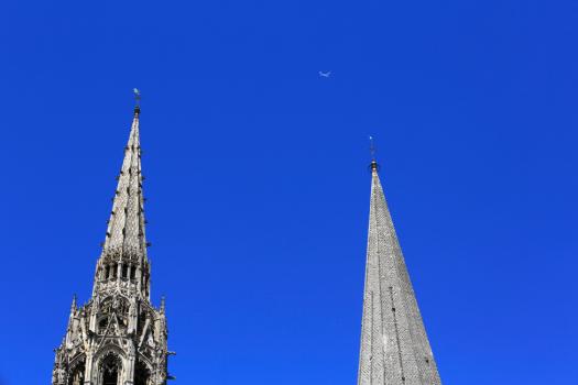 Cathédrale Notre-Dame de Chartres, flèches des deux tours dites clocher neuf et clocher vieux