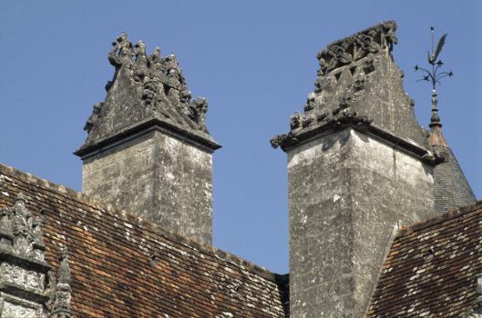 Château de Puyguilhem, souches de cheminées du logis Renaissance et du logis en retour d'équerre