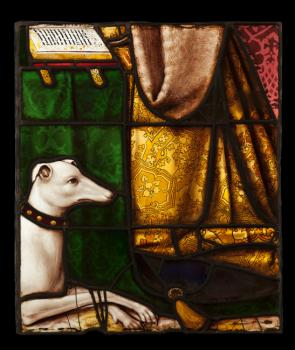 Marguerite d'Autriche et sa sainte patronne, détail du manteau de la duchesse et de son lévrier