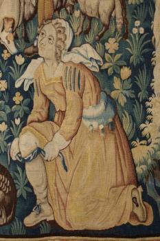 La danse des bergers, détail d'une bergère renouant sa jarretière