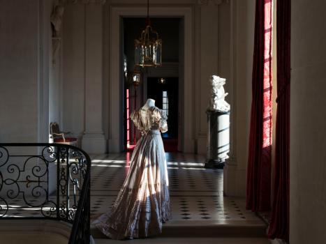 Château de Champs-sur-Marne, costume féminin du XIXe siècle sur le palier du premier étage