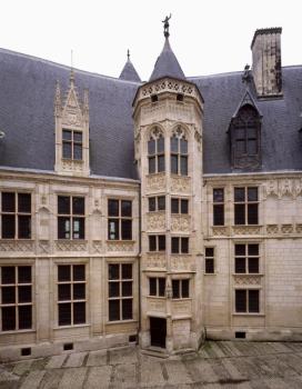 Palais Jacques-Coeur, tour d'escalier centrale et croisées du corps de logis