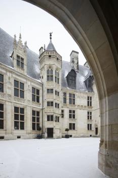 Palais Jacques-Coeur, façade sur cour du corps de logis vue depuis une arcade de la galerie
