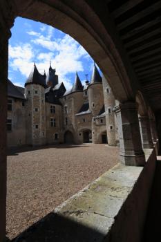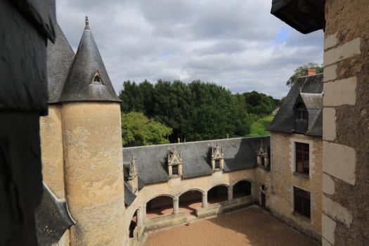 Château de Fougères-sur-Bièvre, cour d'honneur, angle ouest depuis la galerie