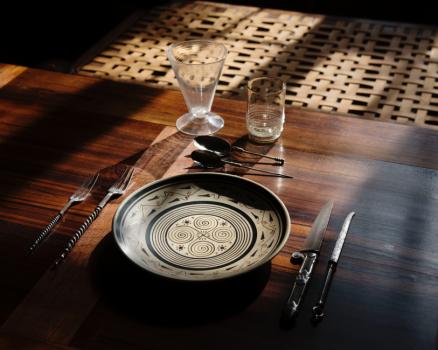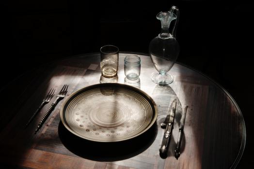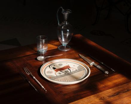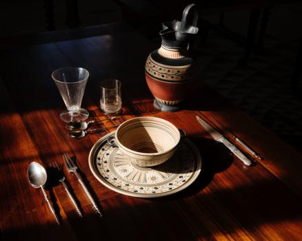 Villa Kérylos, salle à manger (triklinos), table dressée