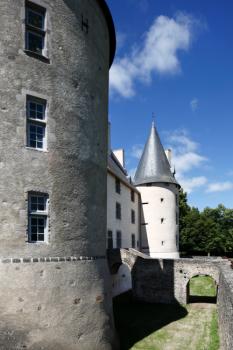 Château de Carrouges, le châtelet depuis les douves