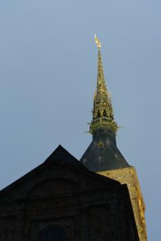 Mont-Saint-Michel, flèche de l'église abbatiale au crépuscule