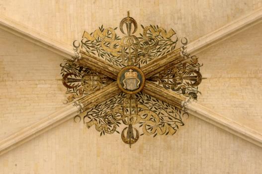 Sainte-Chapelle de Vincennes, décor peint à la clé de voûte de la deuxième travée de la nef