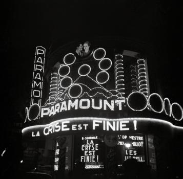 Perspective des Tuileries à la Défense, avec l'avenue des Champs-Élysées et l'Arc de triomphe de l'Étoile illuminé