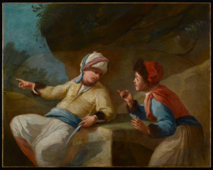 Jeux d'enfants dans un parc : le tir à l'arc (détail)