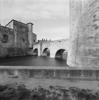 Tours et remparts d'Aigues-Mortes, logis du Gouverneur et douves de la tour de Constance