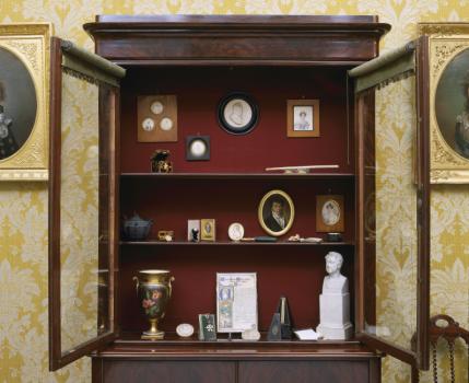 Château d'Aulteribe, salon jaune, armoire des objets ayant appartenu à George Onslow