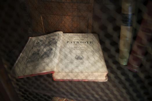 Maison des Jardies, livre ouvert dans la bibliothèque du salon