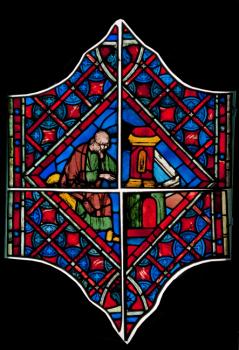 Console de niche en forme de prophète déroulant un phylactère (détail)