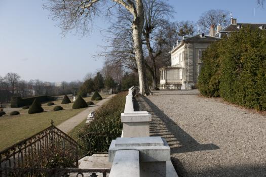 Château de Voltaire, vue sur le château et le parc depuis la terrasse