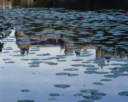 Reflet du château de Pierrefonds dans une étendue d'eau