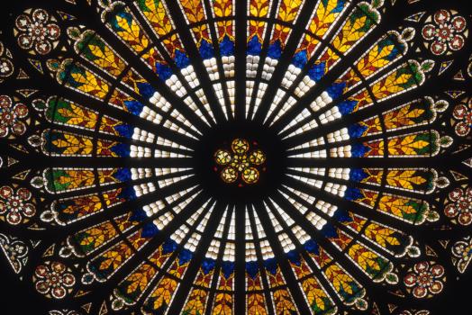 Sainte-Chapelle de Paris, chapelle haute, rose ouest (détail des fuseaux centraux)