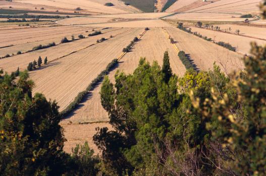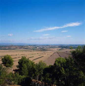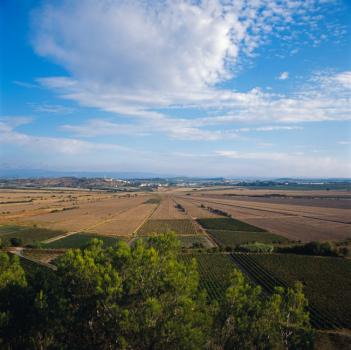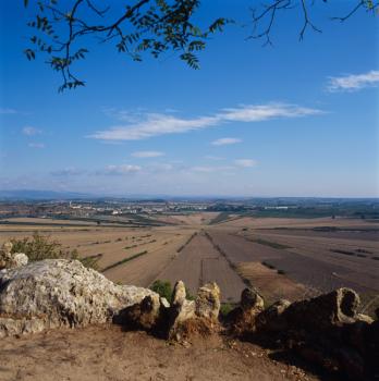 Vue de l'étang asséché de Montady depuis l'oppidum d'Ensérune