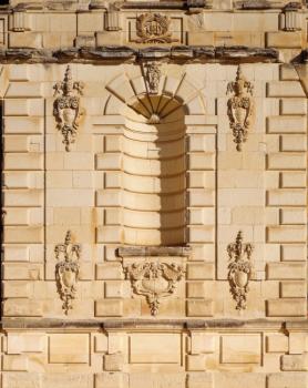 Château d'Oiron, pavillon du roi, détail d'une niche de la façade sud-est