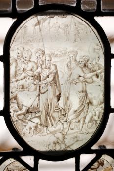 Château d'Azay-le-Rideau, salon Biencourt, vitrail en grisaille