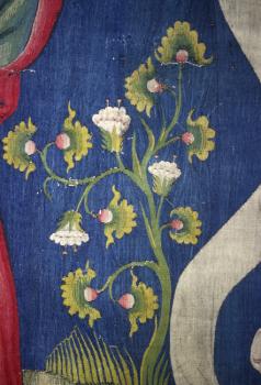 Les larmes de saint Jean, détail de l'arbuste fleuri entre l'ange et le saint