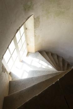 Château de Fougères-sur-Bièvre, escalier de la tour hexagonale