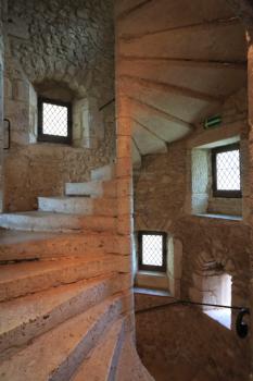 Château de Carrouges, tour du Chartrier, escalier à vis