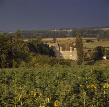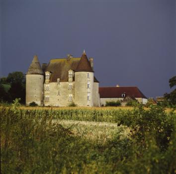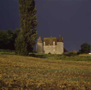 Château d'Aulteribe, façade ouest sous un ciel d'orage