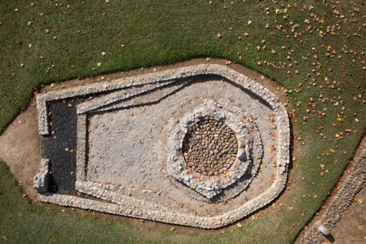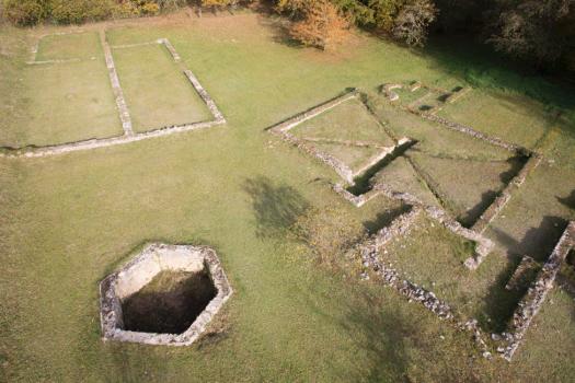 Villa gallo-romaine de Montmaurin, vue aérienne de la chapelle isolée ou templum