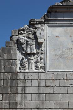 Trophée d'Auguste, trophée à gauche de l'inscription du soubassement de la face nord