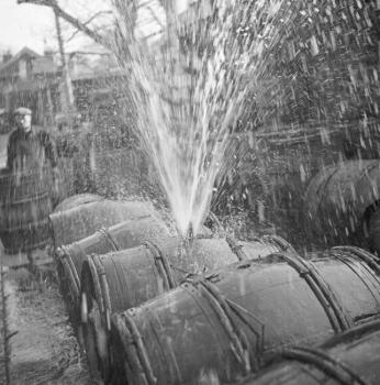 Test d'étanchéité d'un tonneau à la Halle aux vins