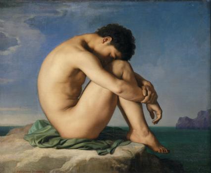Jeune homme nu assis au bord de la mer, étude