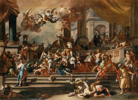 La Vierge et l'Enfant entourés de 6 anges, Saint Antoine de Padoue, Saint Jean l'Evangéliste