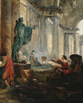 Vue imaginaire de la grande galerie du Louvre en ruines