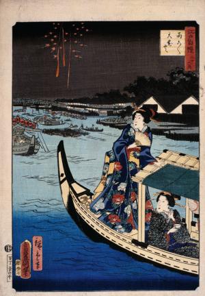 Femme dans une barque durant une fête