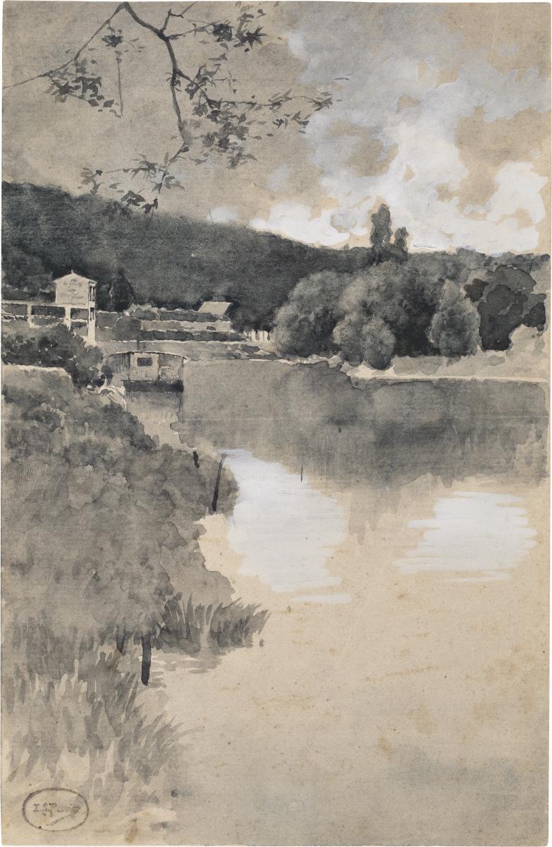 Vista de un río a su paso por Pontoise (?), Isla de Francia