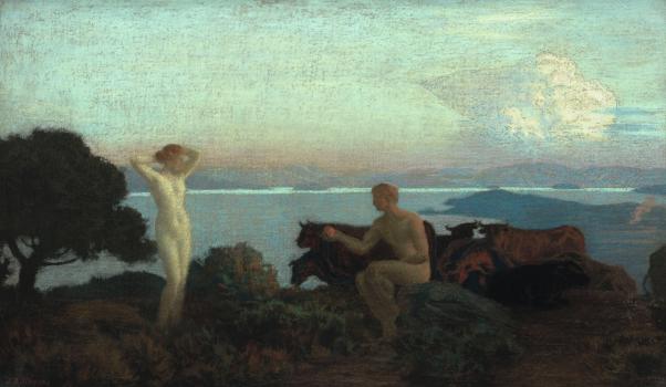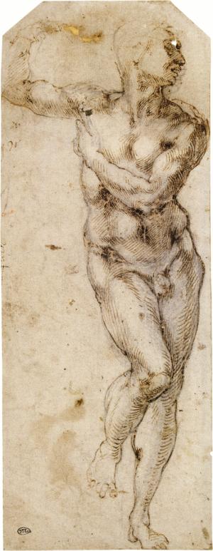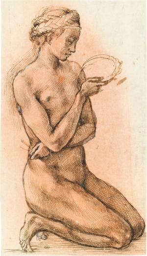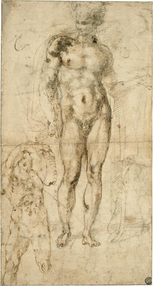 Mercure, inventeur de la lyre; homme nu portant un fardeau