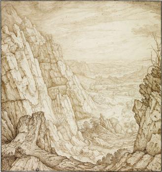Vallée étendue, vue entre deux hauteurs rocheuses