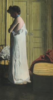 Nu dans un intérieur, femme retirant sa chemise