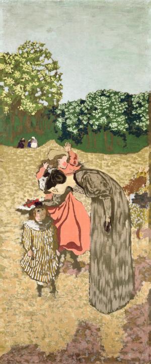 Jardins publics: les nourrices, la conversation; l'ombrelle rouge. La conversation (centre)