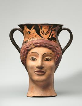 Canthare-vase plastique en forme de tête de femme à figures rouges