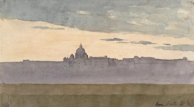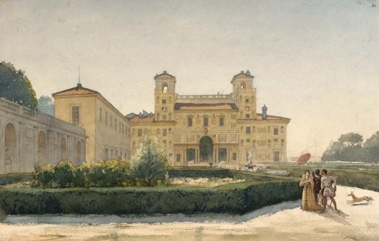 Villa Médicis : vue générale avec des personnages en costume Renaissance