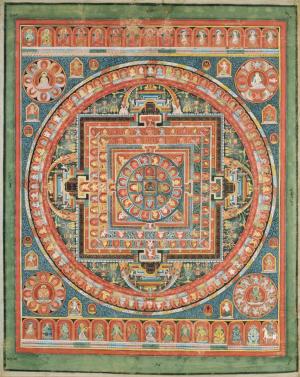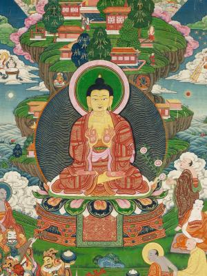 Portrait of Onpo Lama Rinpoche (1251-1296) and the Arhats